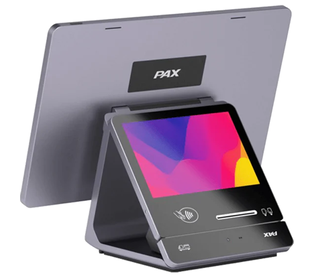 - Features dual touchscreen displays 14” for merchant and 8” for customer to accelerate transactions